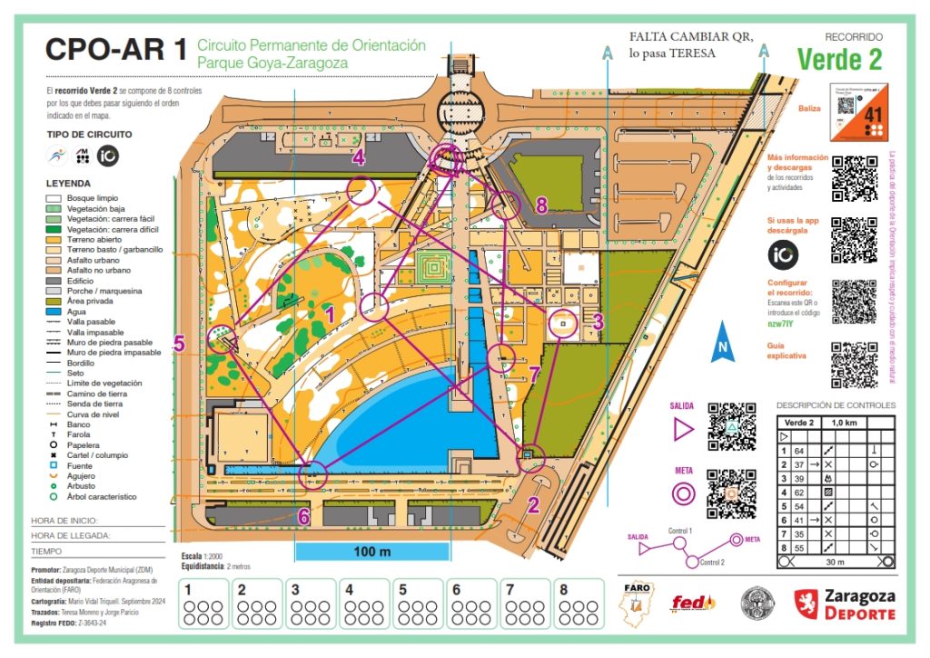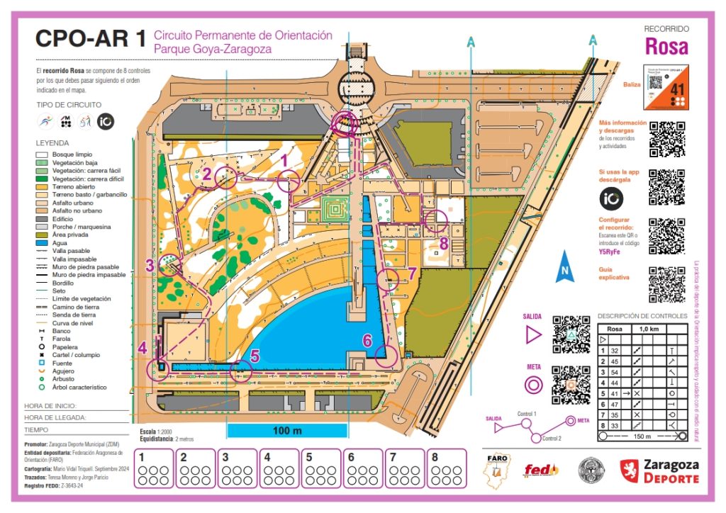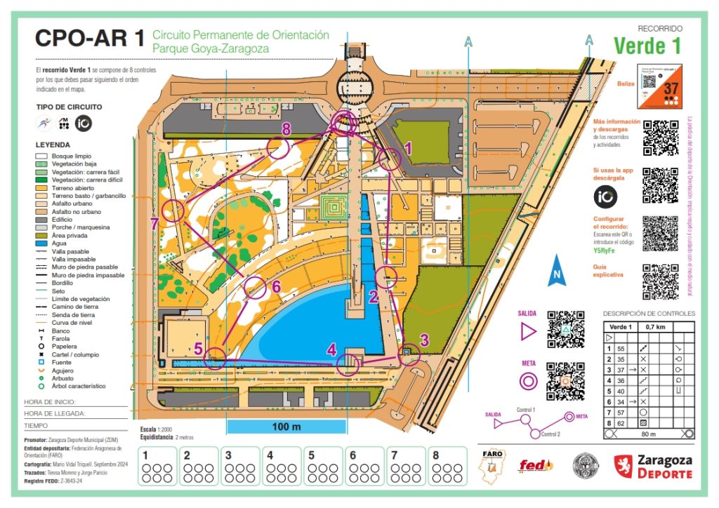 Esta instalación ha sido desarrollada por Zaragoza Deporte Municipal S.A.U. a través de la Federación Aragonesa de Orientación (FARO) y PRAMES S.A. en colaboración con la Comisión de Fiestas del Parque Goya y la Junta Municipal Actur – Rey Fernando.